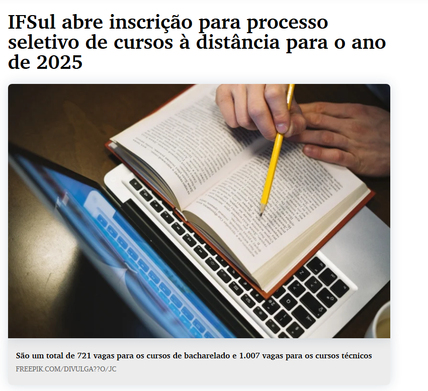 Jornal das Cidades - IFSul abre inscrição para processo seletivo de cursos à distância para o ano de 2025