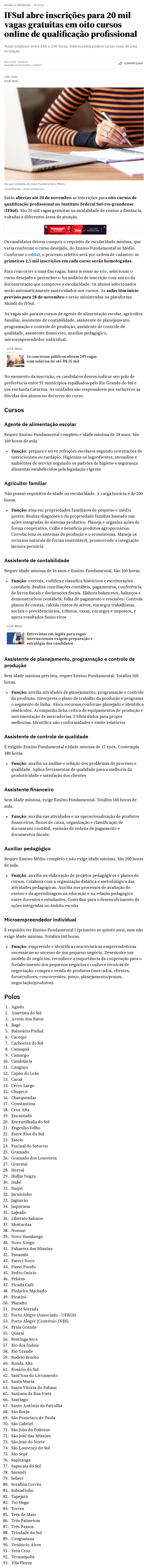 GZH - IFSul abre inscrições para 20 mil vagas gratuitas em oito cursos online de qualificação profissional