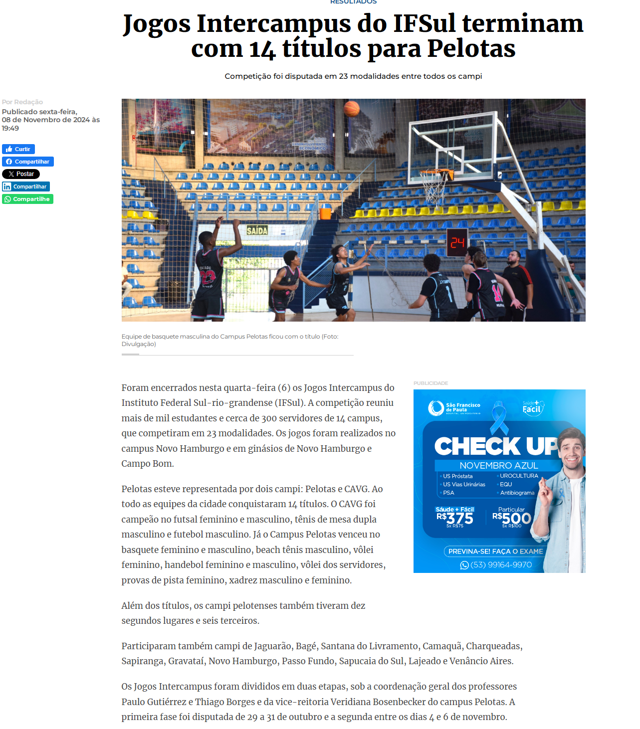 A Hora do Sul - Jogos Intercampus do IFSul terminam com 14 títulos para Pelotas