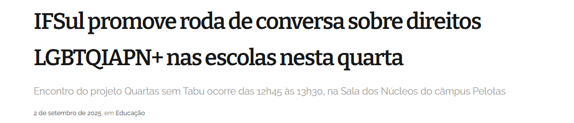RádioCom - IFSul promove roda de conversa sobre direitos LGBTQIAPN+ nas escolas nesta quarta