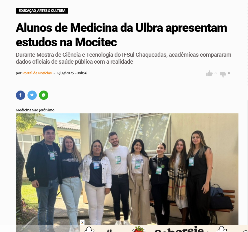 Portal de Notícias - Alunos de Medicina da Ulbra apresentam estudos na Mocitec