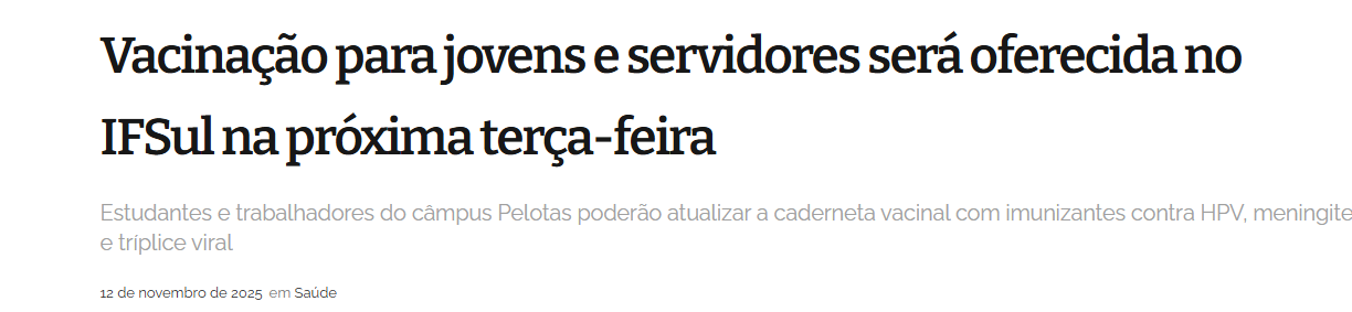 RádioCom - Vacinação para jovens e servidores será oferecida no IFSul na próxima terça-feira
