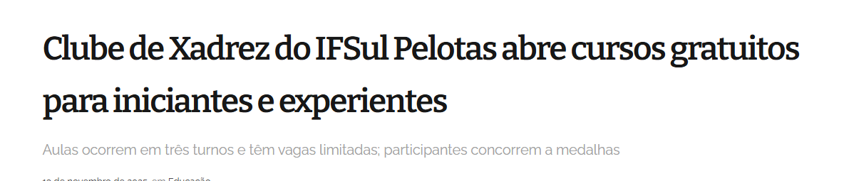 RádioCom - Clube de Xadrez do IFSul Pelotas abre cursos gratuitos para iniciantes e experientes