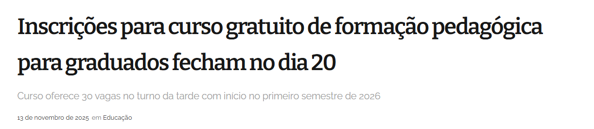 RádioCom - Inscrições para curso gratuito de formação pedagógica para graduados fecham no dia 20