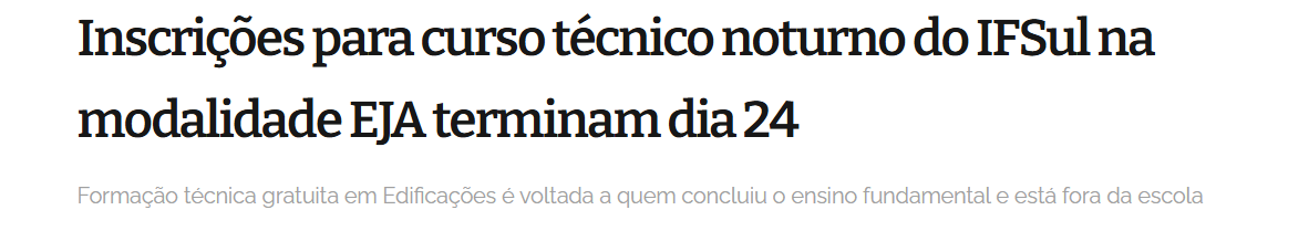 RádioCom - Inscrições para curso técnico noturno do IFSul na modalidade EJA terminam dia 24