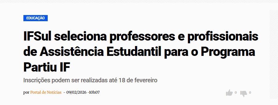 Portal de Noticias - IFSul seleciona professores e profissionais de Assistência Estudantil para o Programa Partiu IF