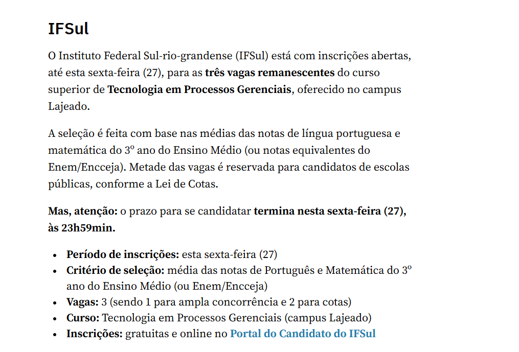 GZH - Universidades públicas do RS têm vagas remanescentes para graduação; confira os prazos