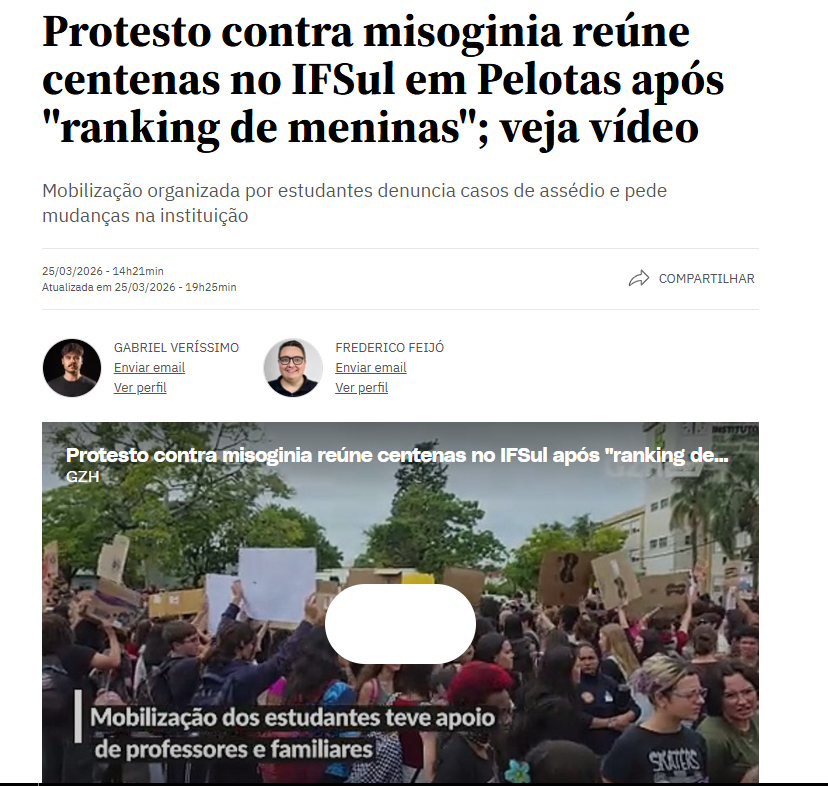 GZH - Protesto contra misoginia reúne centenas no IFSul em Pelotas após "ranking de meninas"; veja vídeo