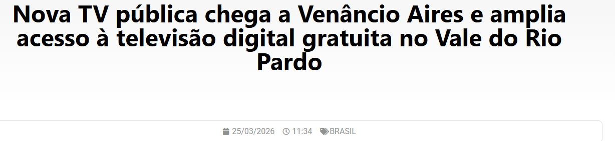 Plantão News - Nova TV pública chega a Venâncio Aires e amplia acesso à televisão digital gratuita no Vale do Rio Pardo