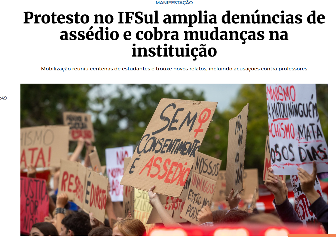 A Hora do Sul - Protesto no IFSul amplia denúncias de assédio e cobra mudanças na instituição