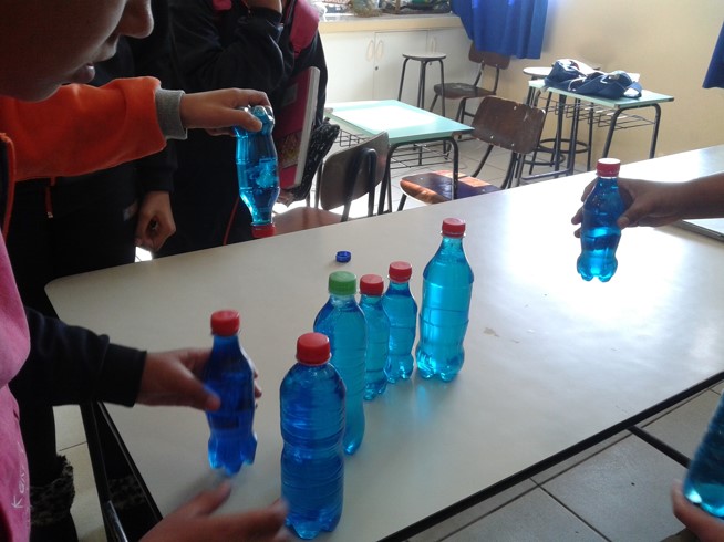 A bolsista Tais Rodrigues trabalhou p tema Cnidários com os alunos dos 7os anos A e B da EMEF Deorar Soares no final de agosto. Os alunos participaram de um pequena explanação teórica e partiram para a confecção de um modelo de água- viva, em seu habitat natural utilizando garrafas Pet, corante, plástico, barbante e água. A atividade foi muito bem recebida e as crianças se divertiram enquanto construíam seus conceitos sobre o tema.
